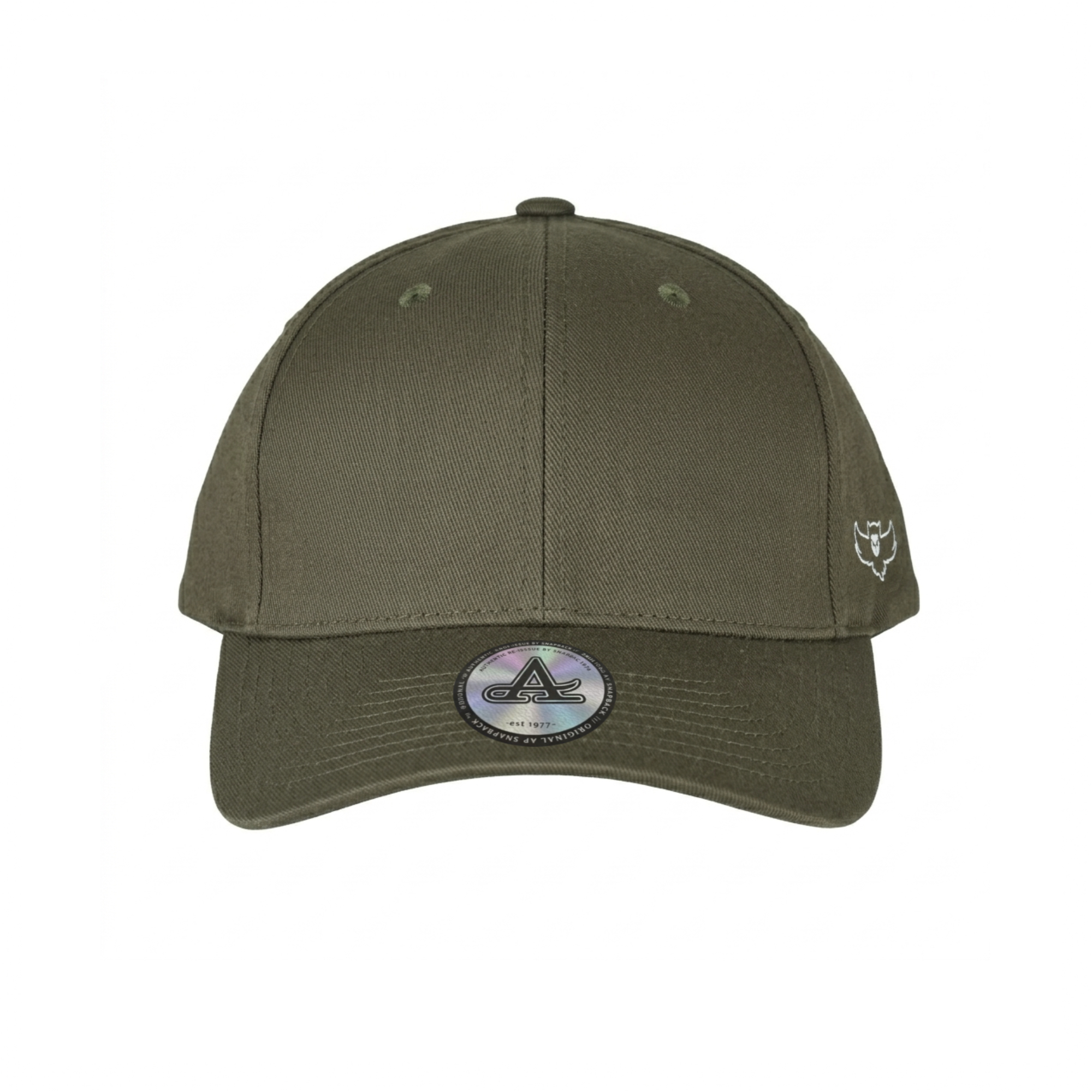 Olivfarbenes Baseball Cap mit Stoffband-Metallverschluss im klassischen DAD HAT Style mit niedrigem Kappenprofil. Sanfter bequemer Stoff der sich der Kopfform anpasst. Bedruckt mit kleinem Eulen Antiwear-Emblem auf der Seite. Grösse verstellbar. Sehr bequem.